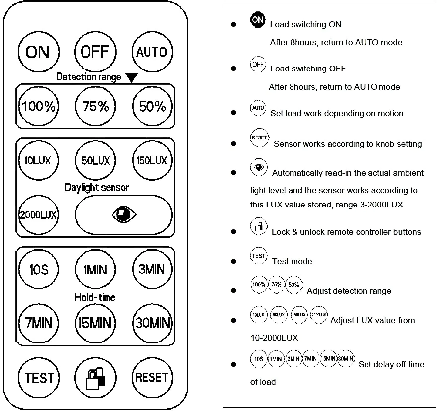 | Daylight Sensor | <3-2000LUX (Adjustable) |