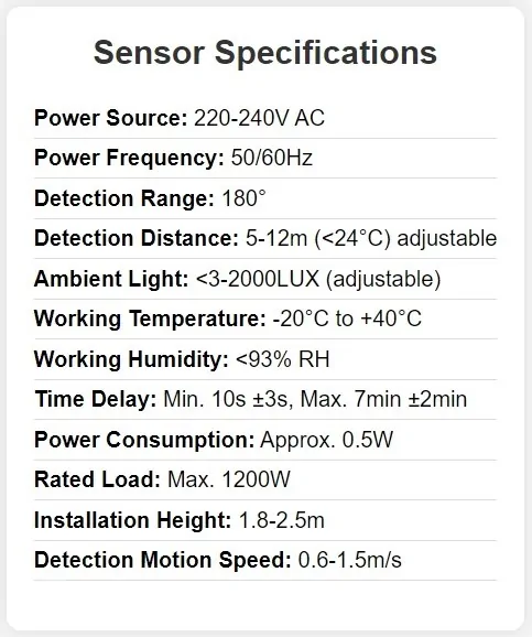 The sensor itself consumes only about 0.5W of power, making it a cost-effective solution for businesses looking to reduce energy consumption.